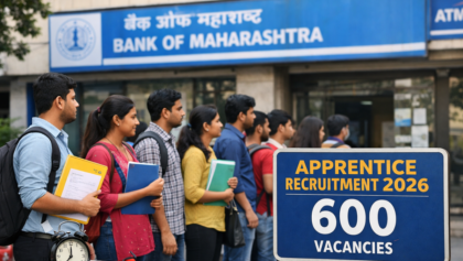 बैंक ऑफ महाराष्ट्र अप्रेंटिसशिप भर्ती 2026: 600 पदों पर आवेदन शुरू, 25 जनवरी तक करें अप्लाई